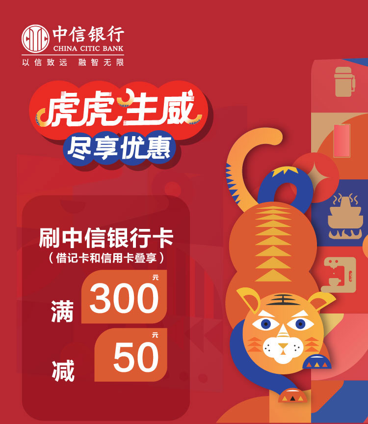 活动内容:在海底捞、湊湊门店,通过动卡空间信收付扫码或中信手机银行扫码付款,单笔满300元立减50元,活动期间,每卡限1次,信用卡每天限量7,000份,借记卡每天限量1,500份,用完即止。