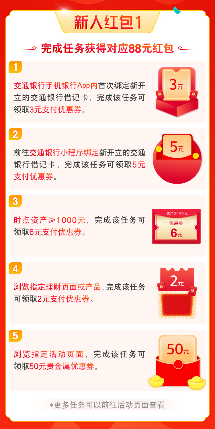 ,首次开立交通银行借记卡的客户,完成指定任务,红包等你来领!