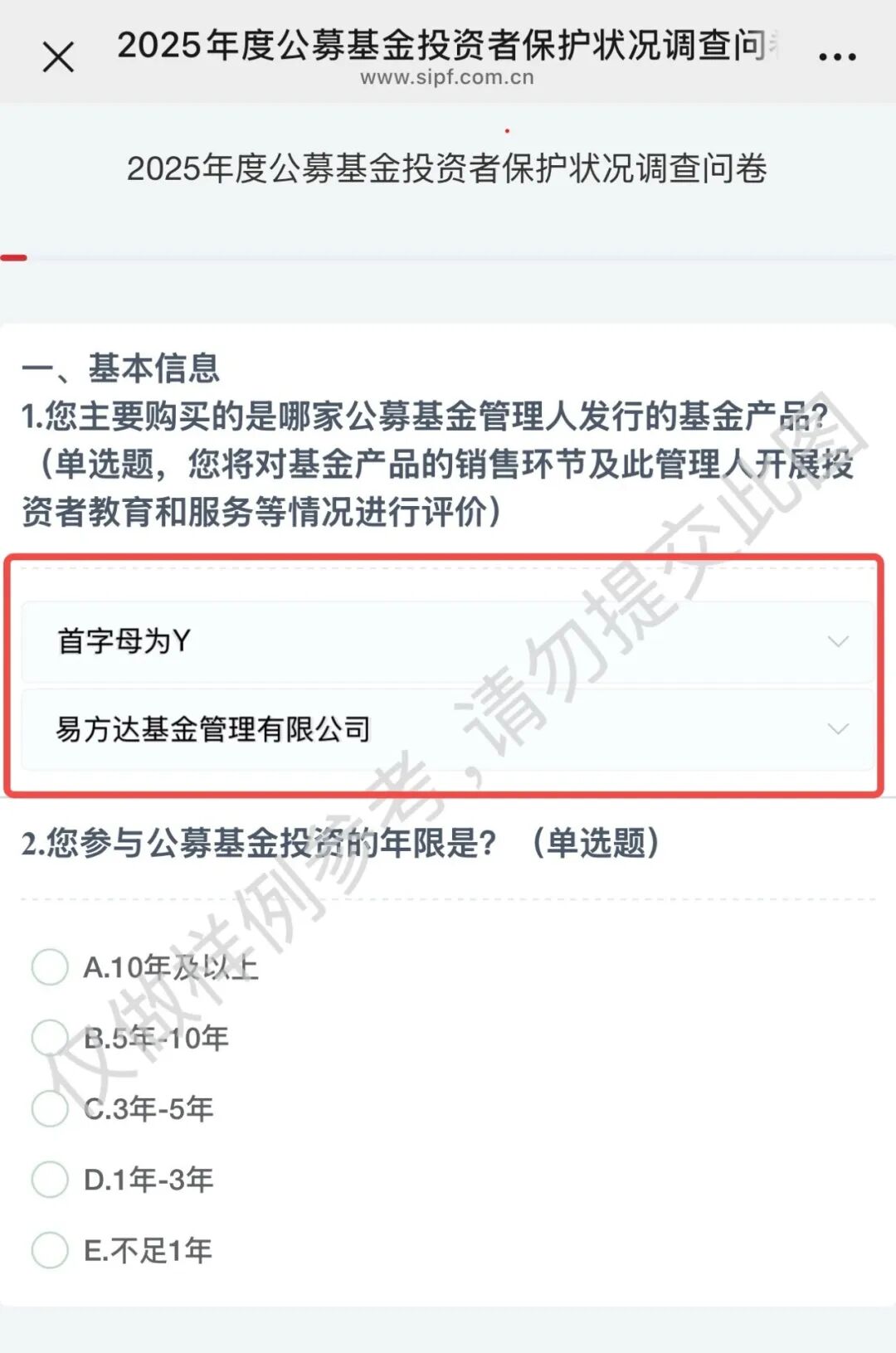 1、第一题请选择机构:易方达基金管理有限公司,并截图保存该页面